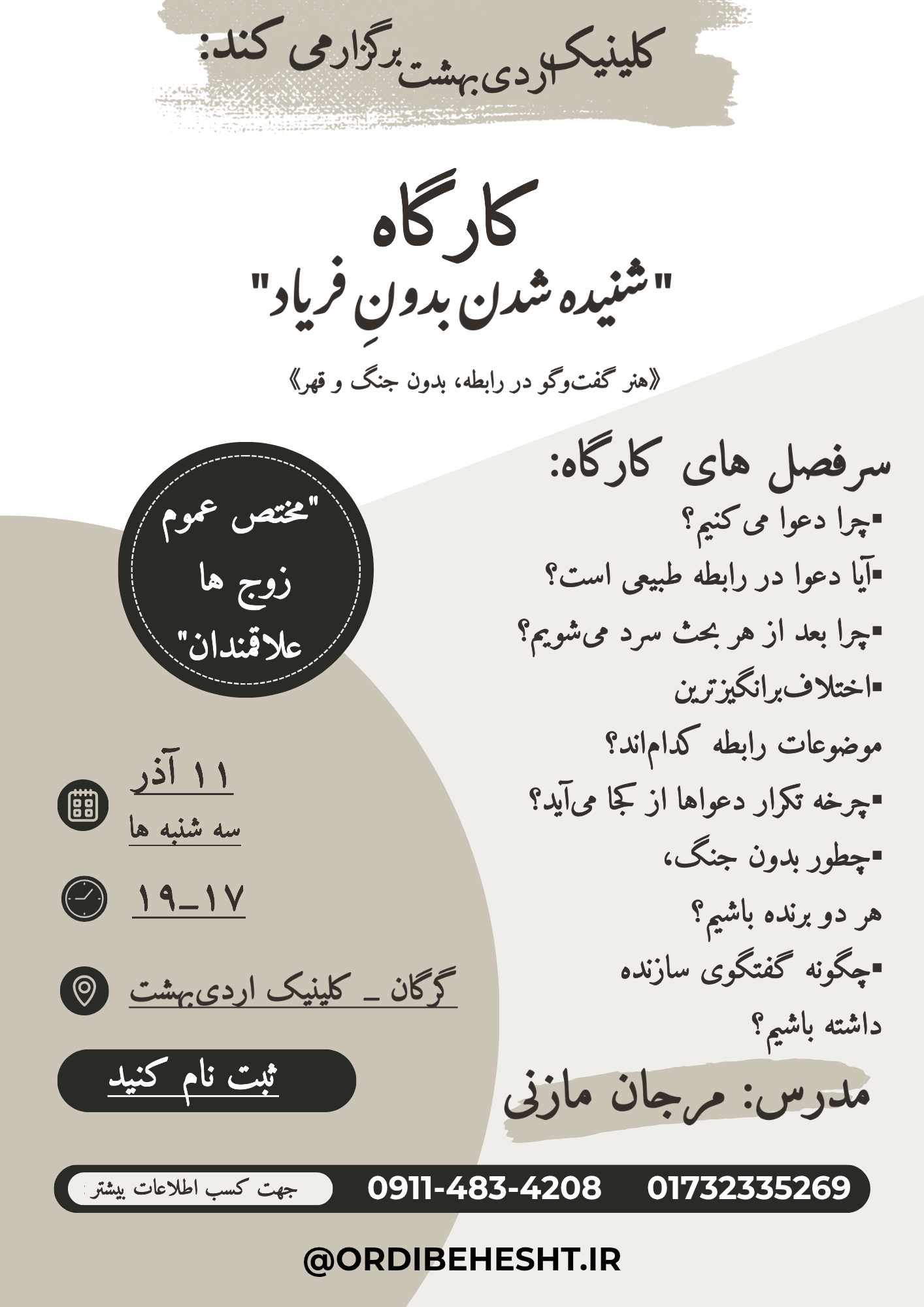 به همین دلیل، اردی بهشت؛ جای که امید جوانه می زند درکنار ماست، جایی برای ارائه خدمات مشاوره، رواندرمانی و برگزاری کارگاههای رشد فردی و کارگاه های تخصصی روانشناسی.