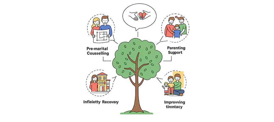 مسائلی مانند خیانت، که به اعتماد و بنیان رابطه ضربه مهلکی وارد میکند، نیز نیازمند رویکرد تخصصی برای بازسازی اعتماد است. در زوج درمانی، این مشکلات به صورت ریشهای بررسی میشوند. درمانگر کمک میکند تا هر دو طرف، احساسات، ترسها و نیازهای پنهان خود را در فضایی امن بیان کنند و به جای سرزنش یکدیگر، برای پیدا کردن راهحلهای مشترک تلاش کنند.